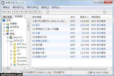 7) 播放清單管理:可隨時建立、刪除、命名、複製播放清單,算是一個比較陽春的清單管理功能。